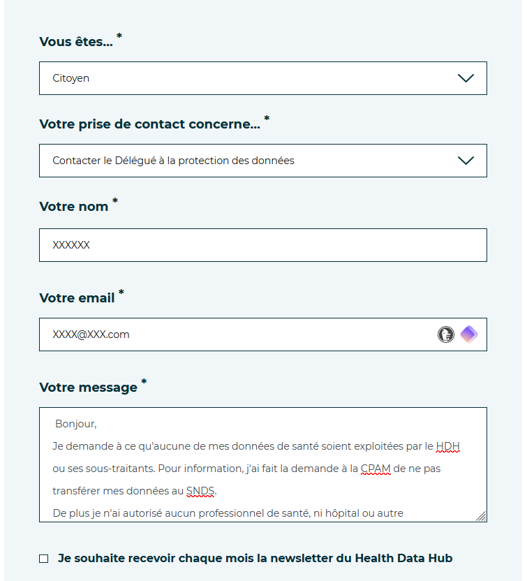 - Aller sur le site du Health Data Hub et de même faire jouer vos droits informatiques et liberté.